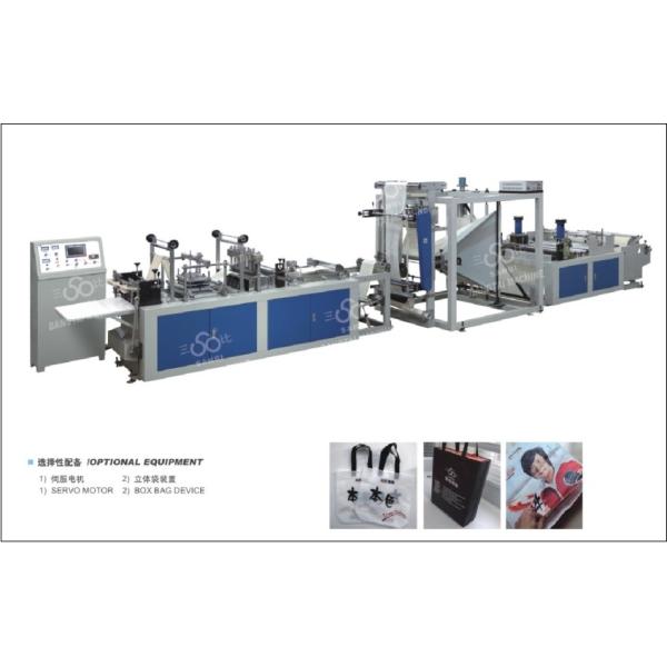 This machine applies for non-woven materials.It can make many kinds of bags such as vest bags, loop handle bags, flat bags ,shoe bags ,box bag etc.
